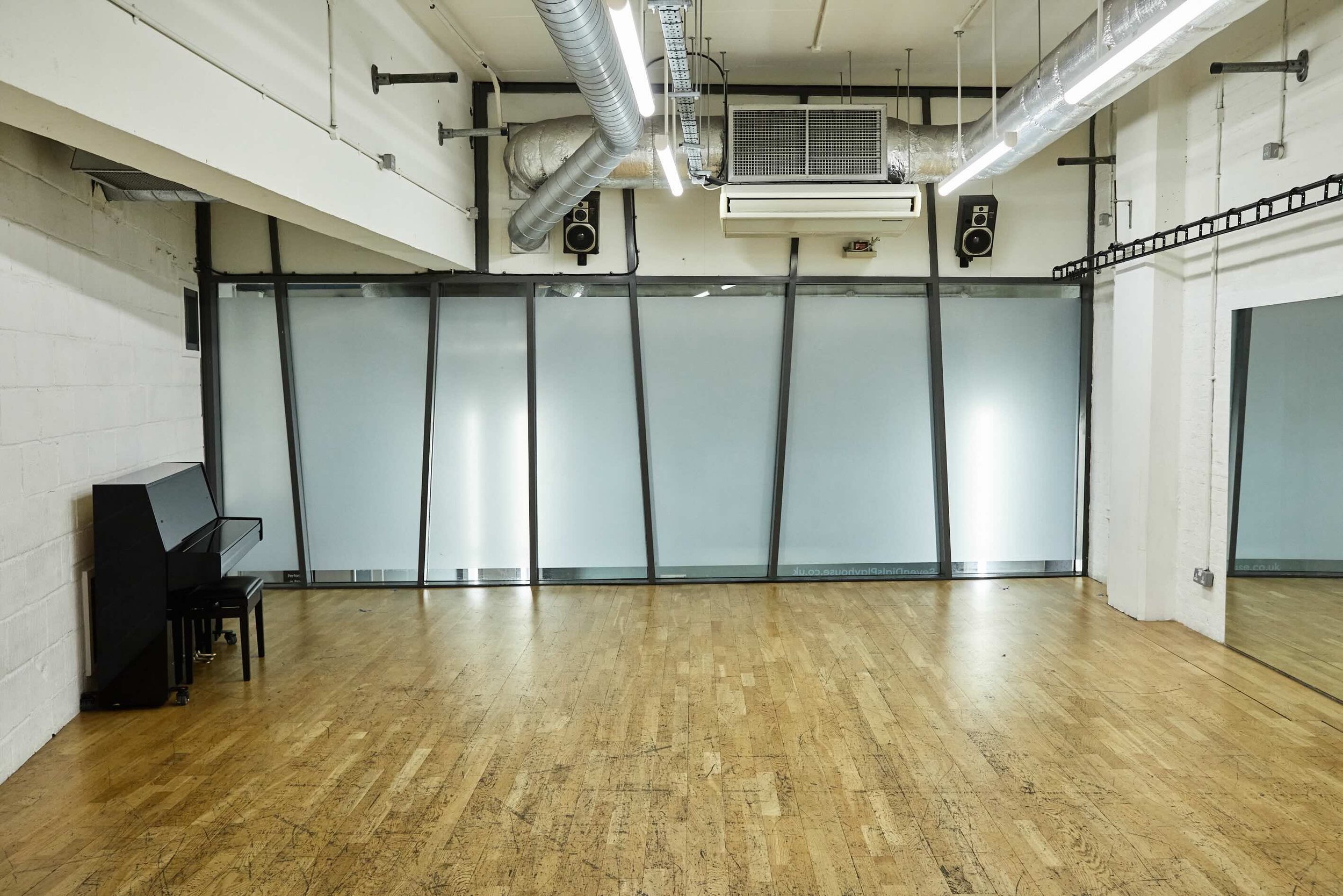 Rehearsal Room 1 is our largest rehearsal space and can accommodate a number of space set ups. With a mirrored wall, semi-sprung floors and sound system, this space is particularly suitable for dance and musical theatre rehearsals and workshops.